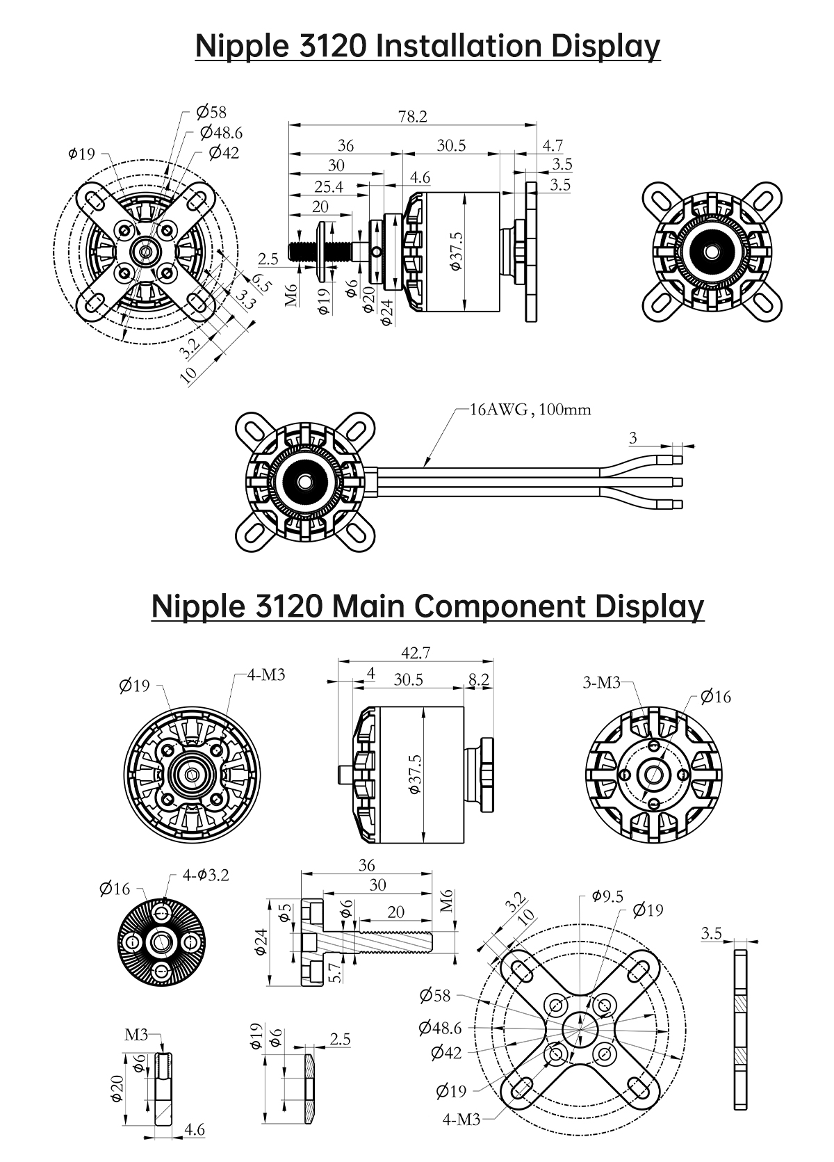 M3 (19X19mm);M3 (42-48.6X42-48.6mm)